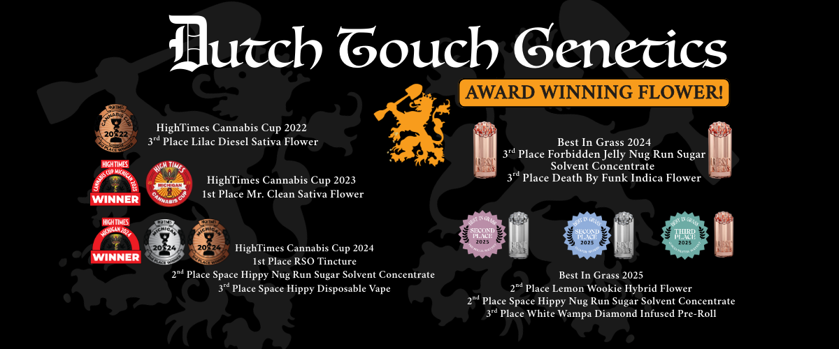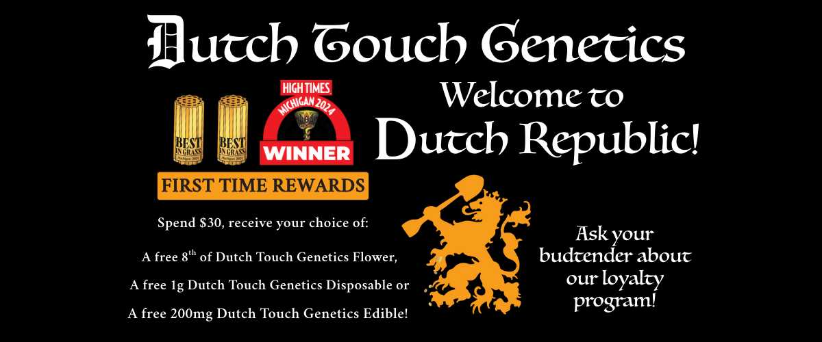 Step into the world of Dutch Republic, the newest chapter in a journey more than 20 years in the making. Powered by our award-winning brand Dutch Touch Genetics—celebrated for precision cultivation, relentless pursuit of excellence, and major wins like 1st Place High Times Cannabis Cup with Mr. Clean, 2nd Place Best in Grass with Lemon Wookie, and several additional awards across concentrates, RSO, and disposable vapes— we’ve now expanded westward into Douglas, bringing our craft and community to Michigan’s lakeshore.