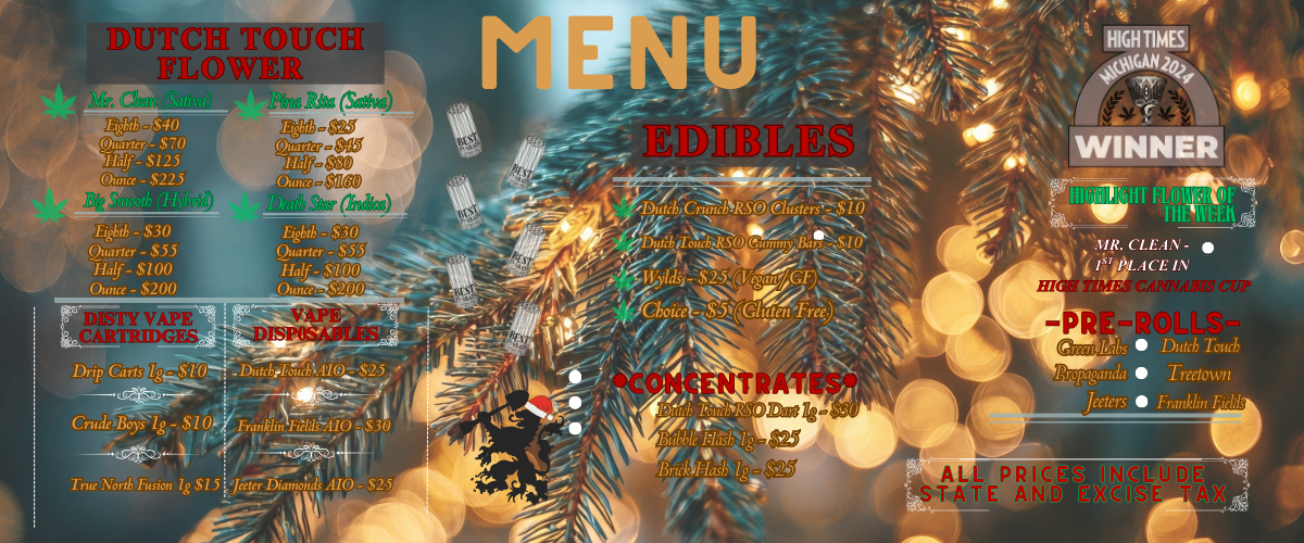 Dutch Republic is more than a dispensary; it’s the living expression of our passion, our people, and our plants. From Luna Pier to Douglas, we’ve built a reputation for quality and innovation, offering a carefully curated lineup that includes flower, concentrates, distillates, and a growing selection of edibles—all crafted with the same precision and pride that made Dutch Touch a name recognized across the state.